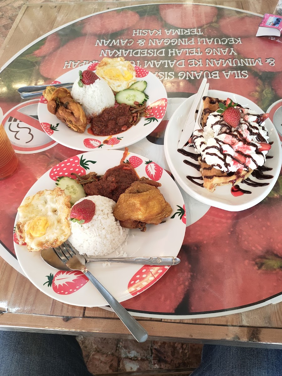Starzy RZ Agro Farm is a café situated in the cool highlands of Tanah Rata, offering a unique twist on local breakfast favorites with a distinct strawberry theme. The café draws both locals and families who are curious about its creative takes on traditional dishes, like the strawberry-topped nasi lemak and various strawberry-infused waffles and ice creams.